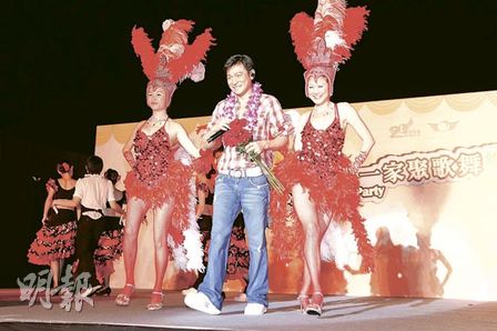中新網(wǎng)9月27日電 劉德華47歲生日,“華仔天地”上周為他預(yù)祝生日安排慶祝活動(dòng),先燒烤再加晚會(huì)表演,香港與海外逾千歌迷參加。在北京殘奧中獲金牌的蘇樺偉帶著金牌出現(xiàn),華仔指對方送給他最好的生日禮物。晚會(huì)中率先出場是性感森巴女郎,華仔在兩名艷女郎陪伴到臺(tái)下看表演,他裝出艷福無邊的表情十分搞笑。