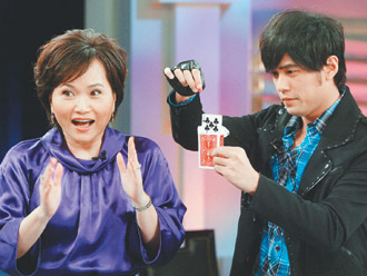 周杰倫(右)對(duì)沈春華露了一手魔術(shù)。