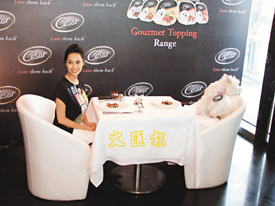 中新網(wǎng)10月22日電 據(jù)香港文匯報(bào)報(bào)道,朱茵昨日出席“西莎主人及愛(ài)犬星級(jí)盛宴”,和白威狗一起共進(jìn)午餐,又親自炮制狗狗美食,一向愛(ài)狗的朱茵更早于前日就和這頭白威狗一起做訪問(wèn)及拍照。