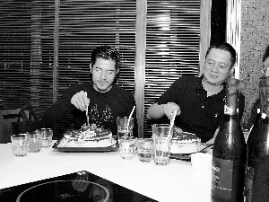 當(dāng)晚,除了慶祝郭富城的生日,還預(yù)祝同是天蝎座的美術(shù)大師張叔平的生日,并趁機(jī)慰勞演唱會(huì)的一群幕后功臣,慶祝演唱會(huì)成功獲吉尼斯大獎(jiǎng)。工作人員還安排了紫紅色葡萄酒香檳為郭富城慶祝,喻意希望大家在工作上都大紅大紫、事事順利。而當(dāng)天的兩則消息則印證了事業(yè)順利:除了《舞林正傳》DVD熱賣外,臺(tái)北兩場(chǎng)小巨蛋演唱會(huì)的售票也十分成功,半天就賣了五成,而中午更令訂票網(wǎng)絡(luò)大塞車,使主辦者邱瓈寬笑逐顏開。郭富城表示,臺(tái)灣演唱會(huì)反應(yīng)良好是很好的生日禮物。而郭富城的經(jīng)理人小美和同事們今年送禮玩新意思,將預(yù)算買禮物給城城的錢,以他的名義捐了去老人院。(記者 葉毅)