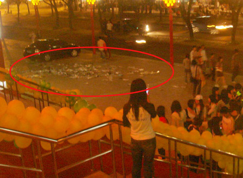 歌友會(huì)門(mén)外被撕毀一地的海報(bào)