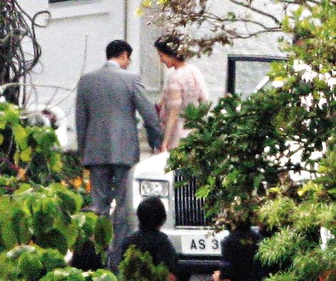 一對新人的家長分別在下午4時半到,李嘉欣的媽咪由一名男士陪同,乘坐一輛車牌XX600的奔馳房車到來,而嘉欣的滿面笑容的胞姊李嘉明,跟隨花車乘坐一輛白色七人車到達大宅,但其葡萄牙籍的父親因為與李母離異多年,與嘉欣已甚少聯(lián)絡,即使嘉欣結(jié)婚之喜也未有出席。