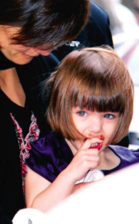 美國紐約當?shù)貢r間11月24日下午,凱蒂·霍爾姆斯帶著她和阿湯哥的寶貝女兒蘇瑞在街邊漫步,蘇瑞吃一個杯狀點心時,滿臉沾著巧克力,十分可愛。
