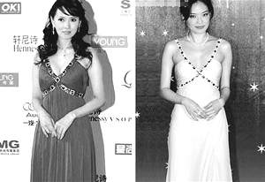“山寨禮服”成為網(wǎng)友關(guān)注的熱點(diǎn)后,眾女星的山寨行為被細(xì)心網(wǎng)友曝光,其中也包括正惹上“婚變”的伊能靜,她去年在上海參加某時(shí)尚活動(dòng)時(shí)身穿的藍(lán)色禮服被指“山寨”自范思哲為舒淇量身定做的全球獨(dú)一無(wú)二的灰白色雪紡吊帶長(zhǎng)裙,兩件禮服僅在顏色及一些細(xì)節(jié)處有些許差異。