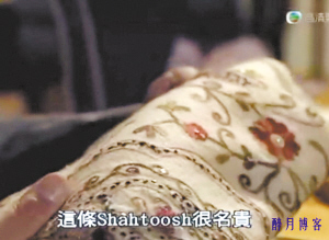TVB臺慶巨制《珠光寶氣》正在如火如荼熱播中,不過近日有細(xì)心觀眾發(fā)現(xiàn),劇中使用了一種名為“沙圖什(Shahtoosh)”的披肩,讓不少正義觀眾相當(dāng)反感。記者通過觀看該劇發(fā)現(xiàn),引起爭議的劇情發(fā)生在第24集:賀家父子為討“康雅思”(蔡少芬飾)的喜歡,爭先恐后送沙圖什披肩以示愛意,并再三強調(diào)“很難得”、“很名貴”。賀哲男甚至說,自己這條比起父親的有過之而無不及,絕對更昂貴和奢華,而蔡少芬更是對這種披肩愛不釋手。