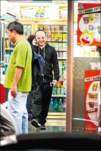 邱淑貞的老公沈嘉偉電話講不停,一邊買了幾本八卦雜志,然后開著跑車回家。
