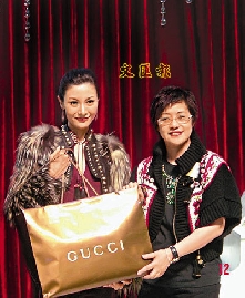 李嘉欣接受主辦方贈(zèng)品。(來源:香港《文匯報(bào)》)