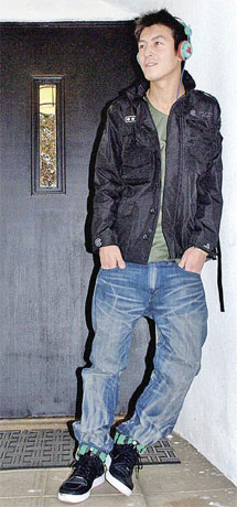 陳冠希示范旗下服裝品牌新衣。香港《明報》圖