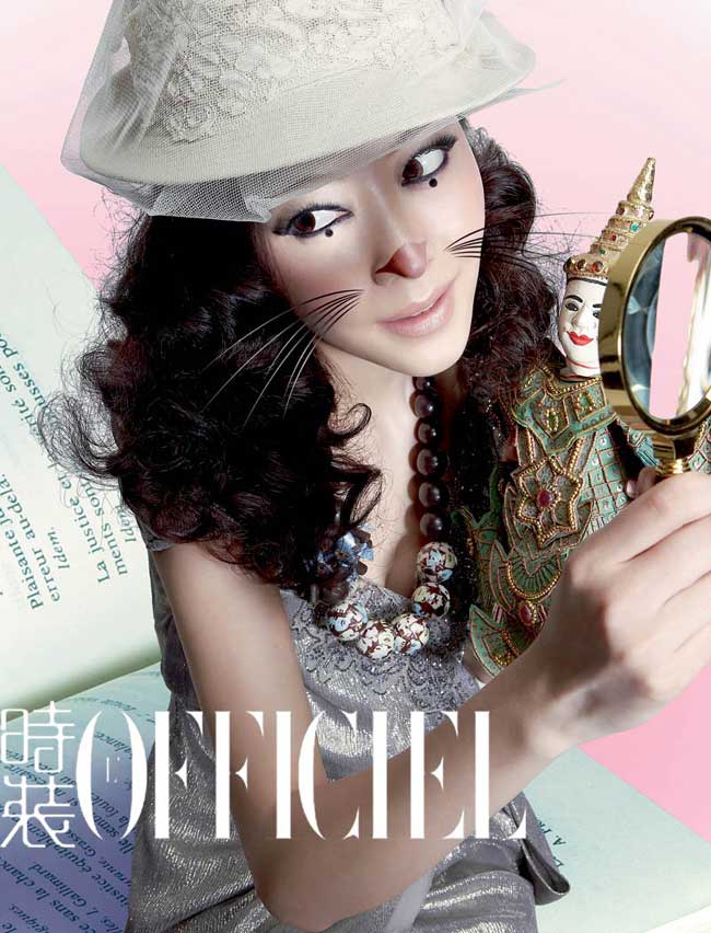聽(tīng)說(shuō)要采訪熊黛林,在場(chǎng)的男同事表情好象是提早看見(jiàn)了世界杯總決賽的欣喜狂熱。在他們的眼里,“熊黛林”三個(gè)字幾乎已經(jīng)與“性感冷美人”劃上了等號(hào),是當(dāng)之無(wú)愧的大眾情人。但當(dāng)你真的與熊黛林面對(duì)面,卻完全無(wú)法將她與冷傲、矜持等氣質(zhì)聯(lián)系起來(lái)。當(dāng)她頂著一架小飛機(jī)燦爛微笑,當(dāng)她化著夸張的貓眼妝扮著鬼臉,你會(huì)錯(cuò)覺(jué)面前站著的不是一位擁有傲人身材的超級(jí)名模,而是一個(gè)古靈精怪的可愛(ài)女孩。
