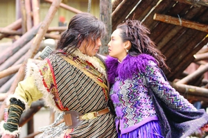 王晶:這個(gè)基本上沒有意義討論。苗若蘭跳下懸崖,沒辦法只能順從?蛋玻瑫簳r(shí)委屈一下,這也是后發(fā)制人的一種想法,隨便犧牲沒有意義嘛!金庸老先生說過,他寫《雪山飛狐》在前,寫《飛狐外傳》在后!堆┥斤w狐》里,苗若蘭只有很少的一段,就是她和胡斐都長(zhǎng)大后相見的那一段。這是金老先生覺得比較遺憾的,所以我就特別安排苗若蘭和胡斐從小就認(rèn)識(shí),從小就愛上了胡斐,以后的故事才順理成章。
