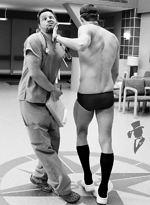 在這集宣傳片中,“菲爾普斯醫(yī)生”脖子掛著金燦燦的獎牌,穿著夸張搞笑,所到之處無不吸引目光。著名脫口秀主持人吉米·坎摩爾淪為配角,扮演一位傷勢嚴(yán)重、躺在手術(shù)臺上的病人。不過,當(dāng)他看到菲爾普斯醫(yī)生一身泳裝走進(jìn)手術(shù)室時,似乎已經(jīng)“不想活了”。菲爾普斯坦承演戲要比游泳難很多,但成為熱播劇集的一部分“會非常有趣”。