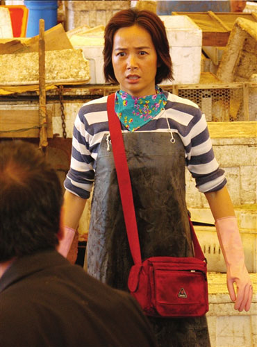 動(dòng)氣氛很幸福”。新劇中,蔣雯麗不僅不化妝,還讓化妝師每天給她往臉上畫雀斑和勞動(dòng)?jì)D女特有的“大紅腮”。