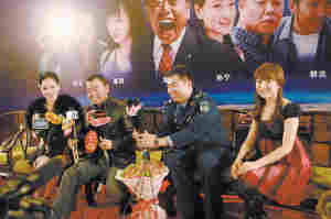 在昨天的關(guān)機(jī)儀式上,潘長(zhǎng)江對(duì)女兒潘陽(yáng)的成熟表現(xiàn)頗感欣慰。據(jù)該劇編劇透露,第二部特地給潘陽(yáng)的戲份加大了難度,還增加了潘陽(yáng)跟男朋友的“親熱戲”,他還報(bào)料說(shuō),潘陽(yáng)拍一場(chǎng)“擁抱戲”的時(shí)候,旁邊有很多人“嫉妒”,還有人手里拿著磚頭、石塊準(zhǔn)備“暴打”一頓飾演潘陽(yáng)男朋友的演員。潘長(zhǎng)江一旁插話說(shuō):“說(shuō)‘嫉妒’不就是說(shuō)我嘛,編劇這么寫,作為導(dǎo)演我是很尊重的,肯定是情節(jié)發(fā)展的需要!彪m然表現(xiàn)得滿不在乎,潘長(zhǎng)江還是流露出對(duì)女兒未來(lái)的關(guān)切,“我覺得她可以多演演年代戲,尤其是‘麻辣公主’那類的角色,跟她自己的個(gè)性比較像。”旁邊的潘陽(yáng)“不樂(lè)意”了:“我麻辣嗎,沒(méi)有吧!”