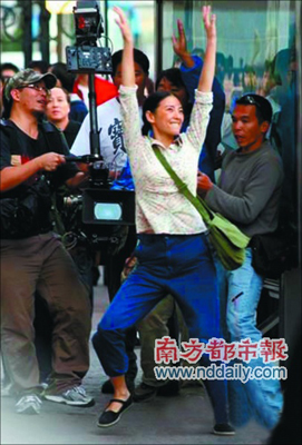 日前,電影《跳出來》在上海拍攝,這部由馮德倫執(zhí)導(dǎo),周星馳監(jiān)制,張雨綺、陳冠希和吳彥祖主演的電影吸引了不少人的目光。當(dāng)然其中最受關(guān)注的還屬“星女郎”張雨綺。探班當(dāng)天,張雨綺的造型讓記者驚訝,麻花辮、黑布鞋、深藍(lán)工裝褲、小碎花襯衫,儼然一個(gè)70年代初的村姑!靶桥伞边一個(gè)勁地在眾人面前扭腰,可能由于露天扭腰委實(shí)不好意思,小妮子NG不斷。