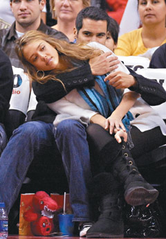 中新網(wǎng)11月20日電 好萊塢新一代性感女星潔西卡·阿爾巴(Jessica Alba)跑去多倫多看NBA籃球賽,不知是看得太累了,還是愛得太濃了,竟然趴在制片男友凱許·華倫(Cash Warren)的大腿上。