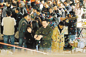 當(dāng)電視熒幕開始倒數(shù),陶大宇和阿寶就走在一起高聲大叫“10、9、8……”,現(xiàn)場此起彼落的鞭炮聲和灑落的彩色紙屑,讓他倆也變得情緒高漲。阿寶把預(yù)先準(zhǔn)備好的香檳取出來,但不知何故弄了好些時間仍無法打開。一開始陶大宇一直在身邊寵溺地看著,最后還是拿過來幫忙,阿寶便挪動身體靠近,與前夫兩人四手緊握著瓶身,只見一個怕得瞇起雙眼,一個面容緊張地終于打開,兩人都好像孩子般歡呼尖叫,非常興奮。