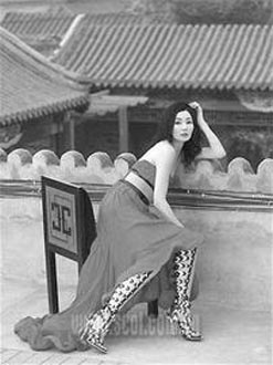 這里是古老的北京,被包圍得如同衣袋里的手帕,屋頂?shù)耐咂懽兂汕嗌驮鹿馐念伾。就是在這里,張曼玉套上巴黎世家、普拉達、迪奧和Balmain,正在自如地演繹模特的角色。她雀躍地穿著飾有羽毛的中式領(lǐng)少女裙裝,蝴蝶夫人式套裝,少婦束腰外衣。這位著名演員的形象呈現(xiàn)出一種糅合了優(yōu)雅、嚴肅與狂野的風格。很難給她歸類,她拍過75部電影,精通所有的電影類型。