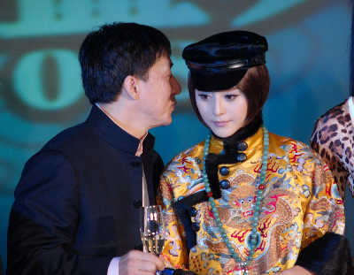 一年前的此時(shí),范冰冰離開(kāi)老東家華誼,轉(zhuǎn)投橙天娛樂(lè),后又自立門(mén)戶(hù)。一年未到,范冰冰又換了新東家。剛剛與成龍?jiān)谙愀酆献髁恕缎滤奘录,范冰冰雖然還未被冠為博納英龍經(jīng)紀(jì)公司“一姐”,但昨日她的待遇卻與其他三位女藝人大不相同。壓軸出場(chǎng)的范冰冰,以一身仿清朝的明黃色皇后服飾亮相,惹來(lái)現(xiàn)場(chǎng)驚呼聲頻頻。而范冰冰在介紹時(shí),笑稱(chēng)自己是為董事長(zhǎng)穿“龍袍”。此話(huà)被大哥成龍適時(shí)拿來(lái)打趣:“冰冰為我穿龍袍哦……”
