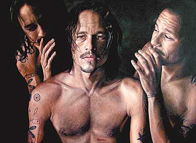 希斯•萊杰生前與好友Vincent Fantauzzo計(jì)劃打造一幅自己的肖像。據(jù)后者透露,在這幅由他完成、取名為“希斯”的肖像畫中,中間占主導(dǎo)地位的“希斯•萊杰”面目茫然,旁邊兩個(gè)“希斯•萊杰”正在他耳邊低語。(張明天)