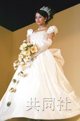中新網2月29日電 據(jù)共同社消息,日本人氣女演員堀北真希27日在婚紗設計師桂由美的最新婚紗秀上,頭戴鑲有價值3億日元(約合2000萬元人民幣)的鉆石寶冠,身穿豪華婚紗閃亮登場。