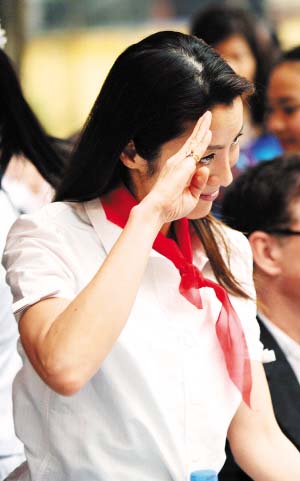 紫瓊昨日在河內(nèi)出席由“國際汽車聯(lián)合會”舉辦的慈善活動,可能男友讓·托德是法拉利老總的關(guān)系,楊紫瓊身兼“公路安全”宣傳大使的重任,此次在河內(nèi)就率先示范戴頭盔的安全意識,越南小朋友還為楊紫瓊系上“紅領(lǐng)巾”。