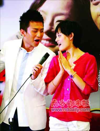 正在熱戀中的孫儷和鄧超前日齊齊亮相北京,為兩人攜手主演的電視劇《甜蜜蜜》在當(dāng)?shù)亻_播造勢(shì)。發(fā)布會(huì)上,兩人不時(shí)眉目傳情、親昵耳語,更搭肩合唱《甜蜜蜜》。孫儷還昵稱鄧超為“小綿羊”,現(xiàn)場大秀恩愛,毫不避嫌。