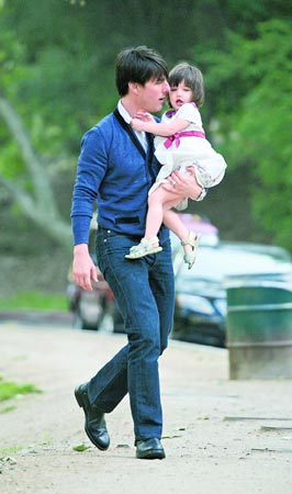 圖文:湯姆·克魯斯扮溫情老爸 抱愛女公園玩耍