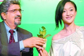 “大使”周迅首先給記者們“上了一課”:主辦方贈(zèng)與每位與會(huì)者一盆小的盆栽植物,周迅拿起來看了看,說“綠色代表希望,這盆小植物是活的,請(qǐng)大家像愛護(hù)自己一樣愛護(hù)這個(gè)地球!苯又,突然意識(shí)到什么,她揭去了植物外面包裹著的塑料袋并說道,“在生活中,我們盡量不要使用塑料袋!