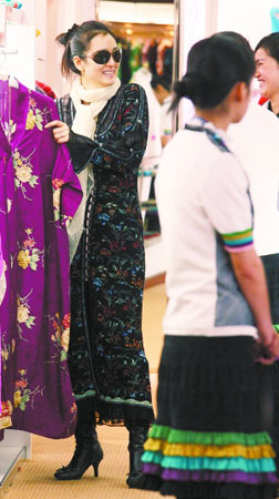 日前,著名影星鞏俐在北京首都機(jī)場免稅店挑選衣服時,被影迷們認(rèn)出。當(dāng)大家紛紛要求與之合影時,鞏俐婉言謝絕,但對影迷的簽名請求則一一滿足。據(jù)說,“只簽名不合影”是鞏俐在許多場合遵循的“原則”。本報記者 胡鐵湘攝