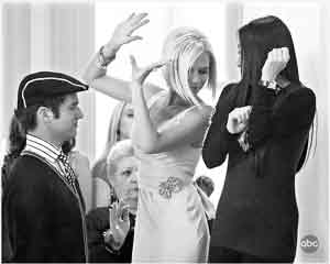 辣妹維多利亞跟隨老公貝克漢姆移居美國后,為打響頭炮,率先以7萬英鎊的片酬客串《丑女貝蒂》,扮演赫爾米娜·斯萊特(瓦內(nèi)薩·威廉斯飾演)的伴娘,并與華裔女設(shè)計師Vera Wang一起粉墨登場。
