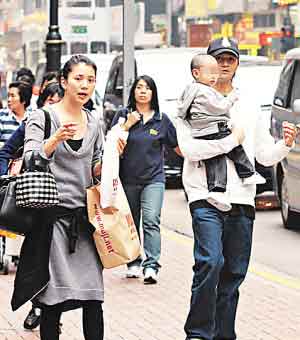 上月25日袁詠儀、張智霖一家三口在銅鑼灣逛街,抱住兒子的張智霖見(jiàn)到記者拍照很大反應(yīng),不看車(chē)就沖出馬路,連老婆在后面叫他都不理,在車(chē)龍中間穿梭去到了對(duì)面行人路,雖然被狗仔偷拍很煩,但是“仔細(xì)老婆嫩”,張智霖以后過(guò)馬路還是小心點(diǎn)好。