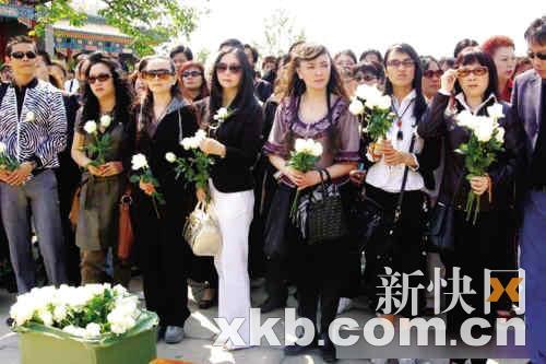 紀(jì)念活動(dòng)開始時(shí),幾百名陳曉旭的影迷帶著白花,圍繞在陳曉旭的水晶雕像周圍。而現(xiàn)場(chǎng)還專門設(shè)立了兩個(gè)祭壇,其中一個(gè)是為5月12日四川地震遇難者專門設(shè)置的祭壇。因?yàn)殛悤孕裆昂V信佛教,還專門為她請(qǐng)來了9位高僧進(jìn)行了簡(jiǎn)短的超度儀式。