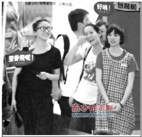 5月6日下午5點(diǎn)半,周迅和劉若英被發(fā)現(xiàn)出現(xiàn)在香港銅鑼灣百德新街。兩位演技派女星素顏出巡,周迅戴著黑框眼鏡,穿著黑衣黑褲扎起發(fā)髻,差點(diǎn)讓人認(rèn)不出,旁邊的劉若英則穿著白色T恤。其間兩人煙癮大發(fā),更走進(jìn)后巷吞云吐霧。最后,兩人讓司機(jī)開(kāi)車(chē)接載戰(zhàn)利品,更不顧一邊的停車(chē)檢控告示牌,違例停車(chē)。