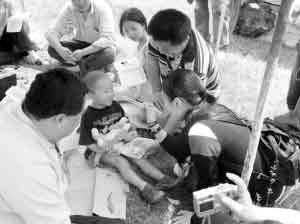 18日蔣勤勤隨全國婦聯(lián)“母愛在行動(dòng)”特別行動(dòng)小組抵達(dá)四川重災(zāi)區(qū)綿竹,把從北京帶來的價(jià)值10萬元的奶粉親自送到了災(zāi)區(qū)母親和孩子們手上,在臨時(shí)搭建的簡(jiǎn)易帳篷里,蔣勤勤跟地震中失去雙親的孩子們玩耍、聊天,她說,孩子們要比她想象中的堅(jiān)強(qiáng),希望能有更多的人關(guān)心這些受災(zāi)母親和兒童。