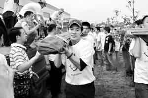 “世界華人都是一家人,我早就想來(lái)災(zāi)區(qū)了,今天都來(lái)晚了,但我會(huì)盡力去支援救助災(zāi)區(qū)群眾的!鼻疤煜挛2時(shí),中國(guó)紅十字會(huì)總會(huì)和李連杰帶著災(zāi)區(qū)群眾最需要的食品、藥品、帳篷等來(lái)到地震重災(zāi)區(qū)什邡鎣華鎮(zhèn),將物資及時(shí)送到了當(dāng)?shù)卣种小.?dāng)日的物資一共重達(dá)50噸,整整裝載了7大卡車(chē)。李連杰表示,哪里最需要物資,壹基金將會(huì)把物資送到哪里。