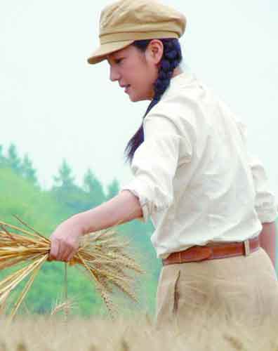 真的女文工團(tuán)員為愛(ài)奮斗一生的傳奇。在拍攝現(xiàn)場(chǎng),趙薇在高溫下割麥子。