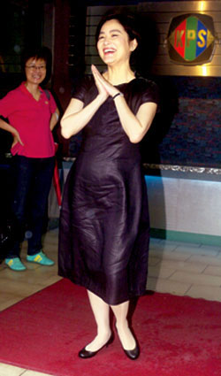 林青霞雙手合一。