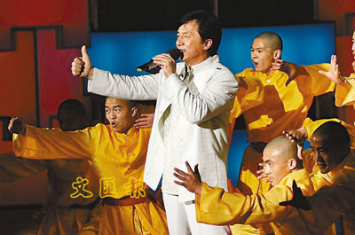 壓軸的成龍?jiān)谘莩曜约簽槿鮿輧和瘎?chuàng)作的歌曲后,開始為孩子們現(xiàn)場募捐,并以一首合唱的機(jī)會(huì)拍賣自己的歌聲。最后一位馮姓女士以148萬的慈善高價(jià)“買”到和成龍合唱的機(jī)會(huì),成龍虔誠地對觀眾說:“只要是為了慈善,我甚么都愿意做!