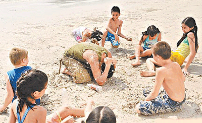 中新網(wǎng)6月10日電 劉德華(華仔)日前在泰國(guó)芭達(dá)雅海灘拍烏龍茶廣告時(shí),被一群小孩團(tuán)團(tuán)圍住,小朋友們不但朝他噴水、丟沙球,還爬到他身上玩自由搏擊,華仔笑說(shuō)自己彷佛年輕10歲,玩得不亦樂乎,儼然一個(gè)大“孩子王”。