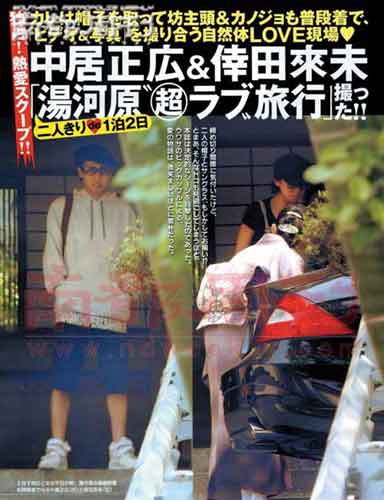 5月30日發(fā)售的《Friday》刊登了一組幸田來(lái)未和中居正廣共游溫泉?jiǎng)俚氐恼掌。?007年夏兩人傳緋聞以來(lái),這是媒體第一次拍到照片。幸田來(lái)未(25歲)和中居正廣(35歲),相差10歲的戀情堂而皇之地登上刊頭。
