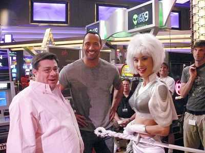 導(dǎo)演安迪·菲克曼、男主角巨石·強森和“外星公主”黃圣依