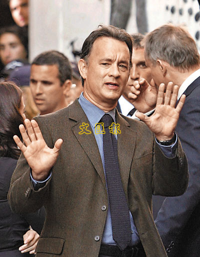 預(yù)期跌出百大的湯姆·漢克斯,看來(lái)心情未受影響。(文匯報(bào)圖)