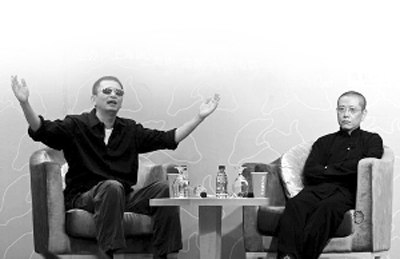 昨天的這個論壇雖是王家衛(wèi)主持,但是他幾乎把所有時間留給陳丹青,自稱自己欽佩陳丹青多年,甘當(dāng)配角。但是陳丹青卻一點也不給他面子。兩位大師一上臺,記者們就紛紛拍照,閃光燈閃成一片。誰料,陳丹青剛跟大家問過好,就指著王家衛(wèi)說:“我是被他綁架來的!彼又V苦道,“坐在這臺子上,我不能抽煙。我一不抽煙智商就下降一半。雖然我知道抽煙不好,F(xiàn)在你們還不停拍我,我都快說不出話來了!闭劻艘粫惖で嗤蝗挥謥砹司洌骸敖裉煳液玫姑,先是被綁架來,現(xiàn)在發(fā)現(xiàn)襪子沒穿好,襪子幫太短,我不能把腿蹺著坐,老這樣端端正正地坐著,真累!”