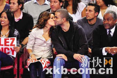6月15日,NBA圣安東尼奧馬刺隊(duì)當(dāng)家球星托尼·帕克攜愛妻伊娃·朗格莉亞現(xiàn)身巴黎,觀看法國(guó)籃球聯(lián)賽的決賽,為兄弟TJ·帕克加油打氣。伊娃與帕克接吻大秀恩愛,兩人儼然成了比賽場(chǎng)邊最耀眼的明星。