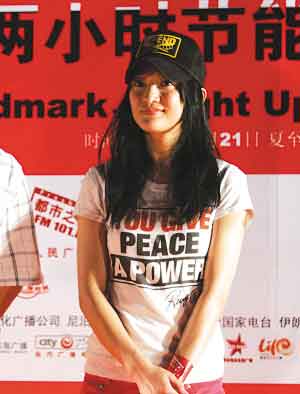 周迅宣傳亞洲熄燈兩小時(shí)節(jié)能活動(dòng)。