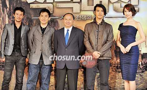 據(jù)朝鮮日報報道,昨日《赤壁大戰(zhàn):龐大的戰(zhàn)爭之開始》導演吳宇森(62歲)和主演梁朝偉(飾周瑜)、金城武(飾諸葛亮)、張震(飾孫權)、林志玲(飾小喬)出席在首爾廣壯洞華克山莊酒店舉行的記者會,為影片在韓國首映造勢。