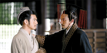 張震:這是我第一次正式地演古裝片,很過癮。因?yàn)橐郧把莨叛b戲比較少,所以開拍之前作了一些準(zhǔn)備,上儀態(tài)課,學(xué)三國人坐姿,他們?yōu)槭裁炊家蛑,雙手為什么放在大腿上?那是因?yàn)樾渥雍艽螅豁樢幌虏皇娣,這恰好就體現(xiàn)了他們的優(yōu)雅。打戲也一樣,每個人穿的披風(fēng)都不一樣,還有佩劍什么的,每個人出場的感覺就不一樣。演古裝片就有這個好處,穿上衣服就有感覺了。