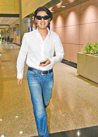 昨午金城武返臺(tái),在機(jī)場(chǎng)看到記者守候,大方對(duì)著鏡頭展現(xiàn)迷人笑容。