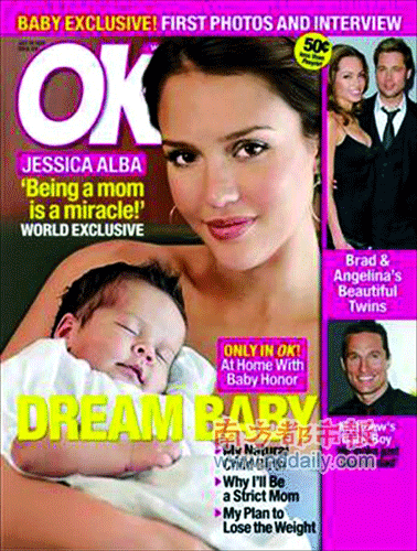 6月7日誕下女兒奧內(nèi)·瑪麗·沃倫(HonorMarieWarren)的杰西卡·阿爾巴(JessicaAlba),抑制不了150萬(wàn)美元的“誘惑”,和女兒亮相本周《OK!》雜志封面,同時(shí)大談懷孕生產(chǎn)趣事,并自爆懷孕期間完全沒(méi)有“性致”。