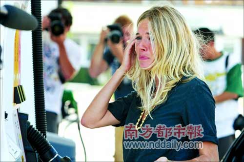 2008年8月11日,美國(guó)女星西耶娜·米勒駕駛她的凌志跑車現(xiàn)身某加油站。當(dāng)狗仔提到關(guān)于她和巴薩扎·蓋提的緋聞時(shí),西耶娜的眼淚奪眶而出,顯得非常委屈。